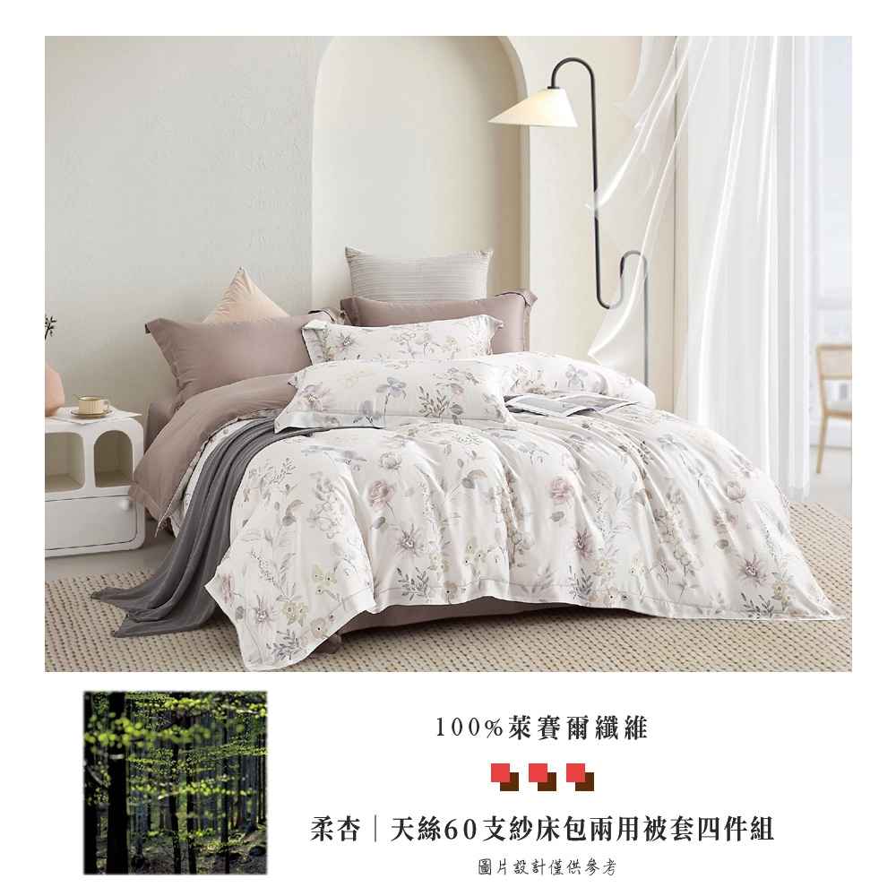 特大|60支100%天絲兩用被床包四件組-柔杏